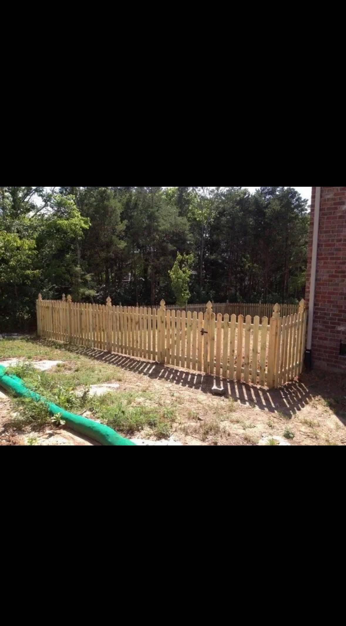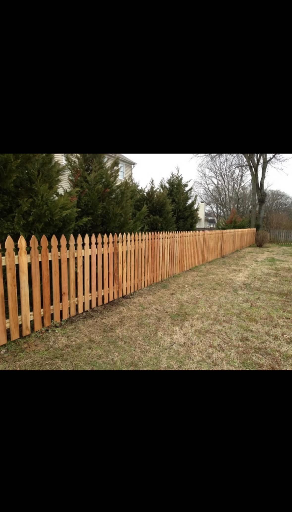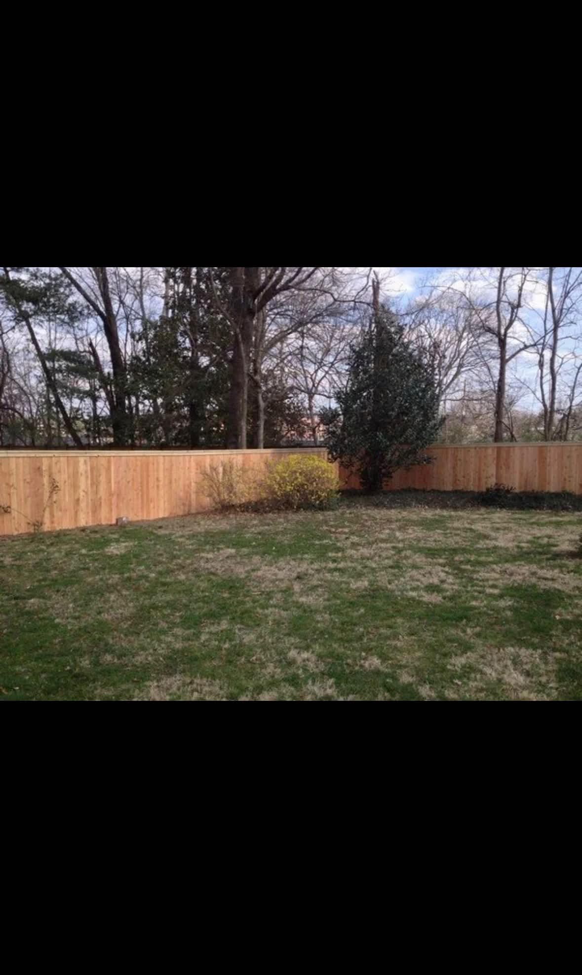 Emergency storm damage repair replacing 120 feet of damaged wood fence with matched cedar boards. Posts reset, panels rebuilt, and sections stained to blend with existing fence.